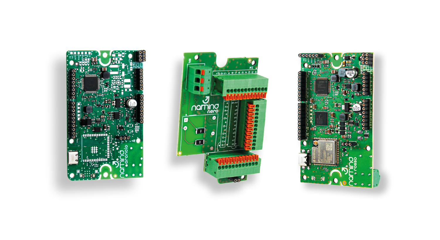 NAMINO unites the industrial world with that of makers using analog and digital inputs and outputs, RS485, I2C, SPI, UART, Wi-Fi, Bluetooth and ARDUINO Uno shields interfaces.